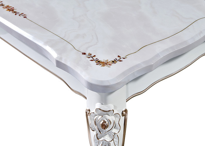 রেট্রো ইউরোপীয় স্টাইলের বিলাসবহুল মার্বেল টেবিলের শীর্ষ কাঠের ডাইনিং টেবিল হোটেল রেস্তোঁরা ভোজ ban
